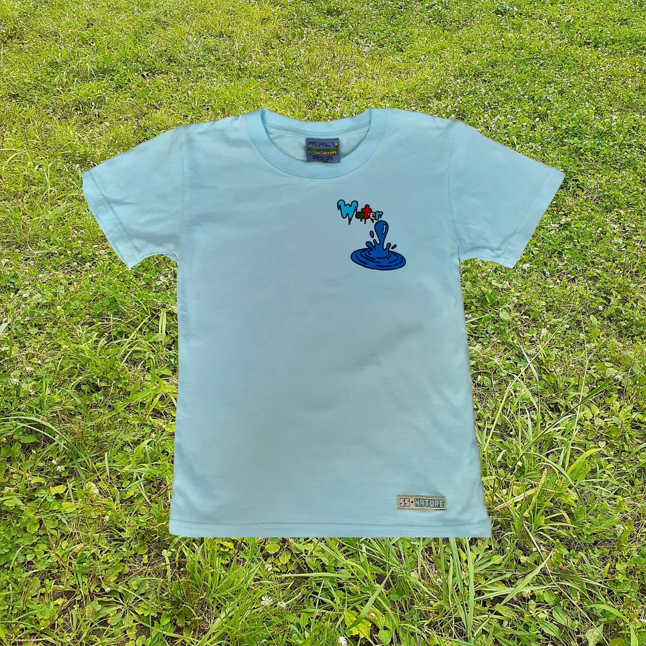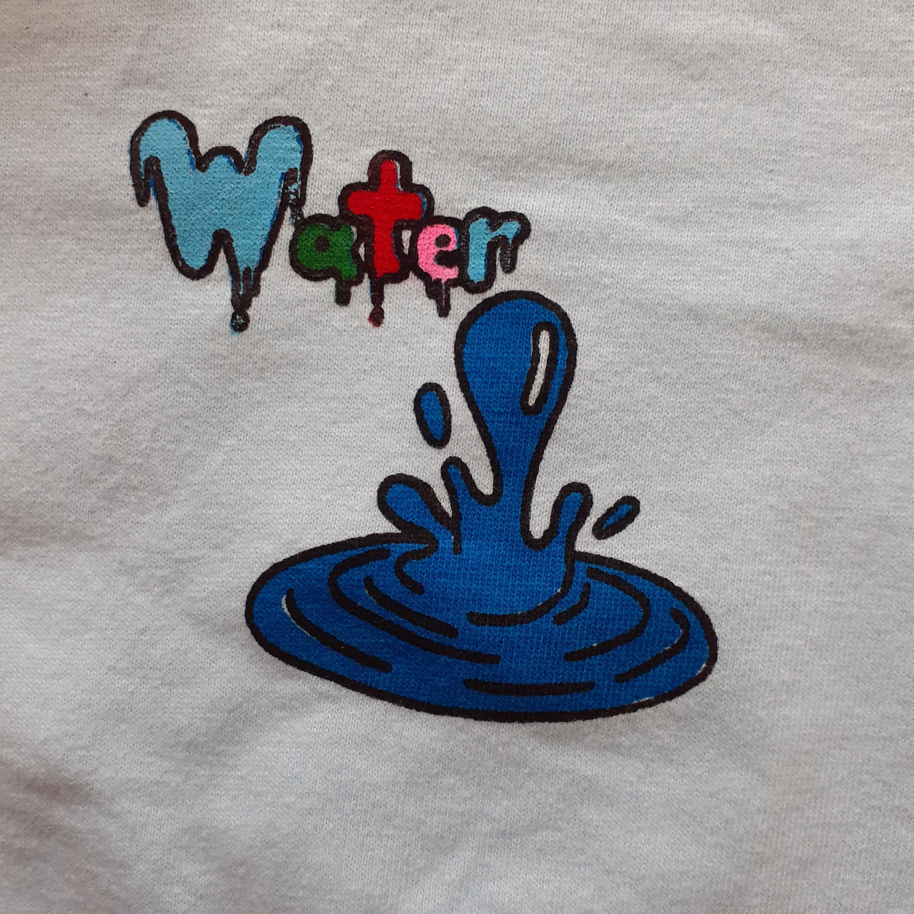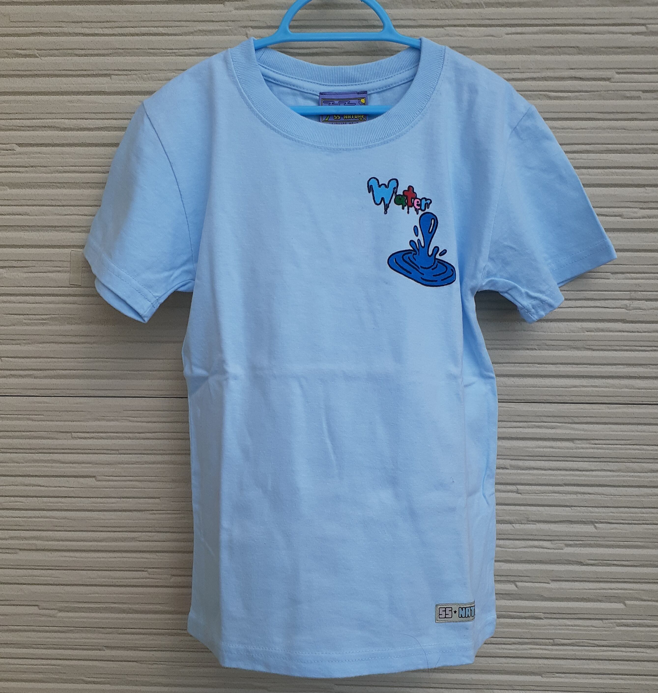 左胸に曜日を表したモチーフのワンポイント。(冷静に水曜日:水滴)
