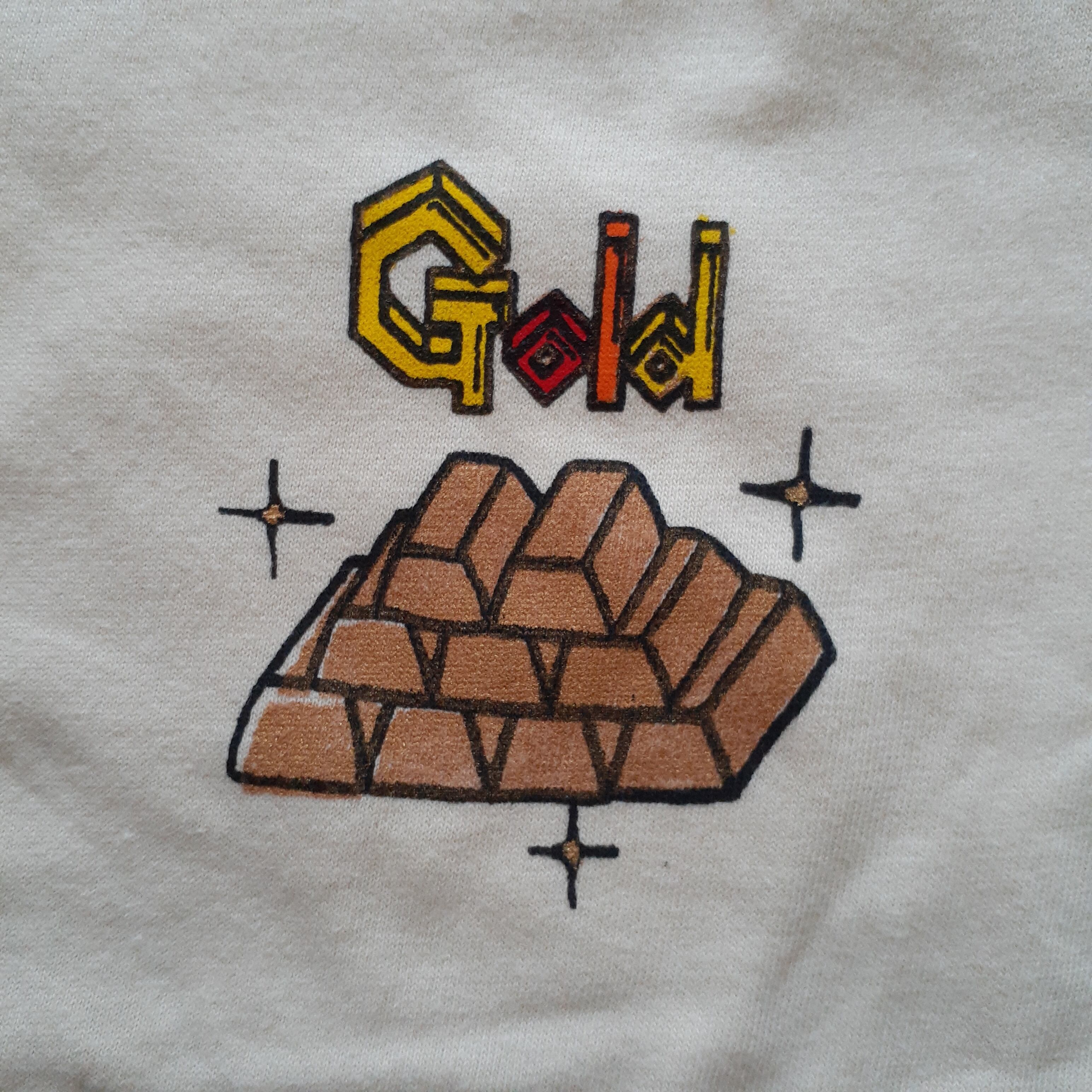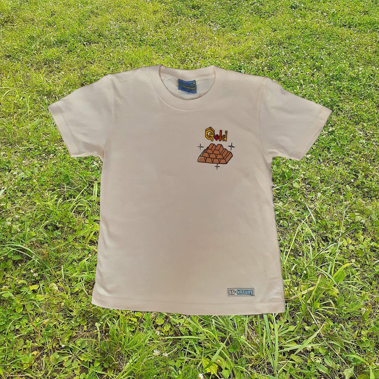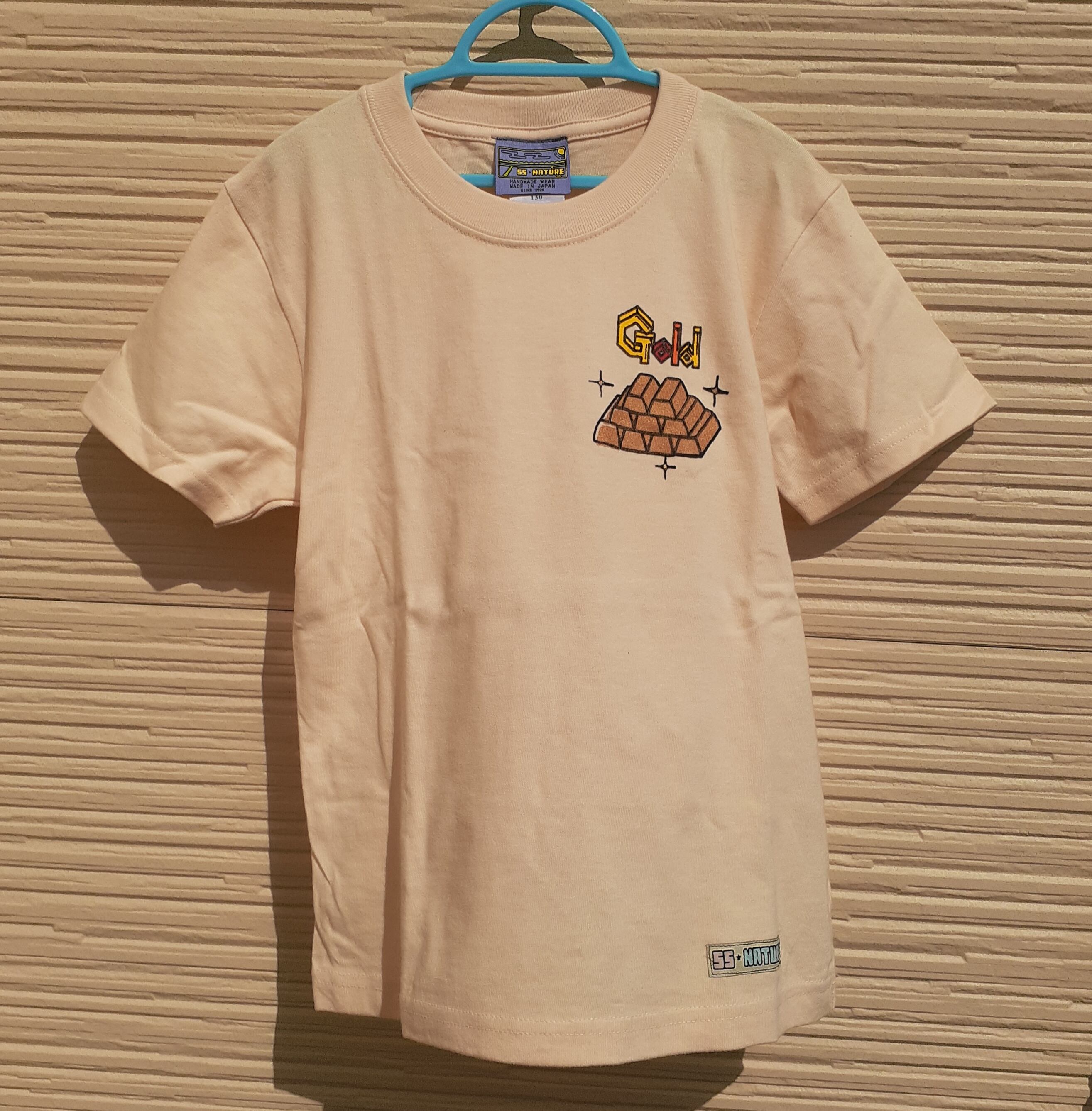 左胸に曜日を表したモチーフのワンポイント。(ギラギラと金曜日:金塊)