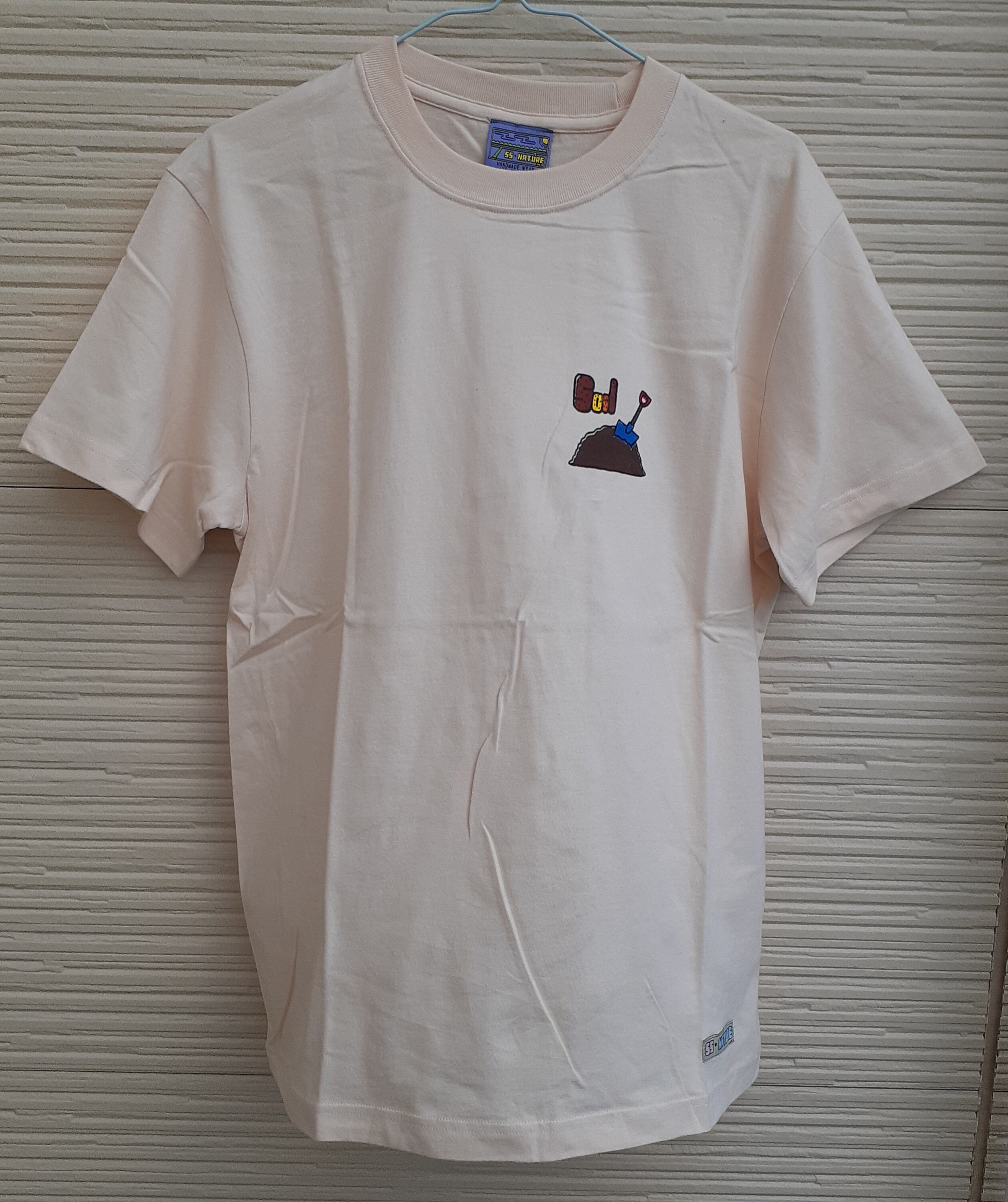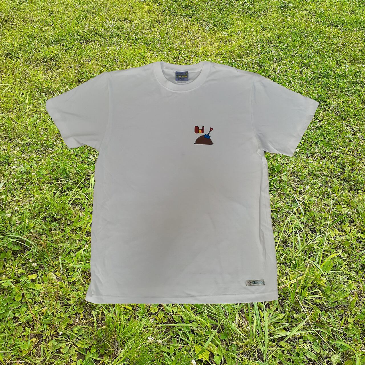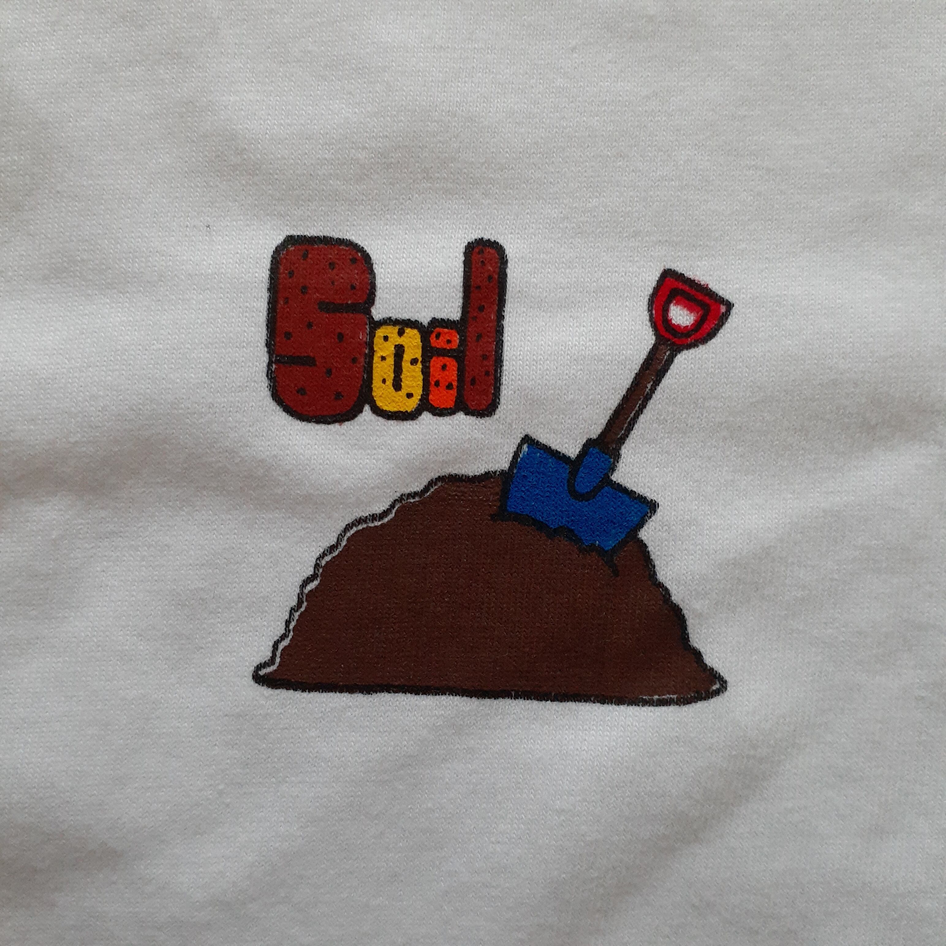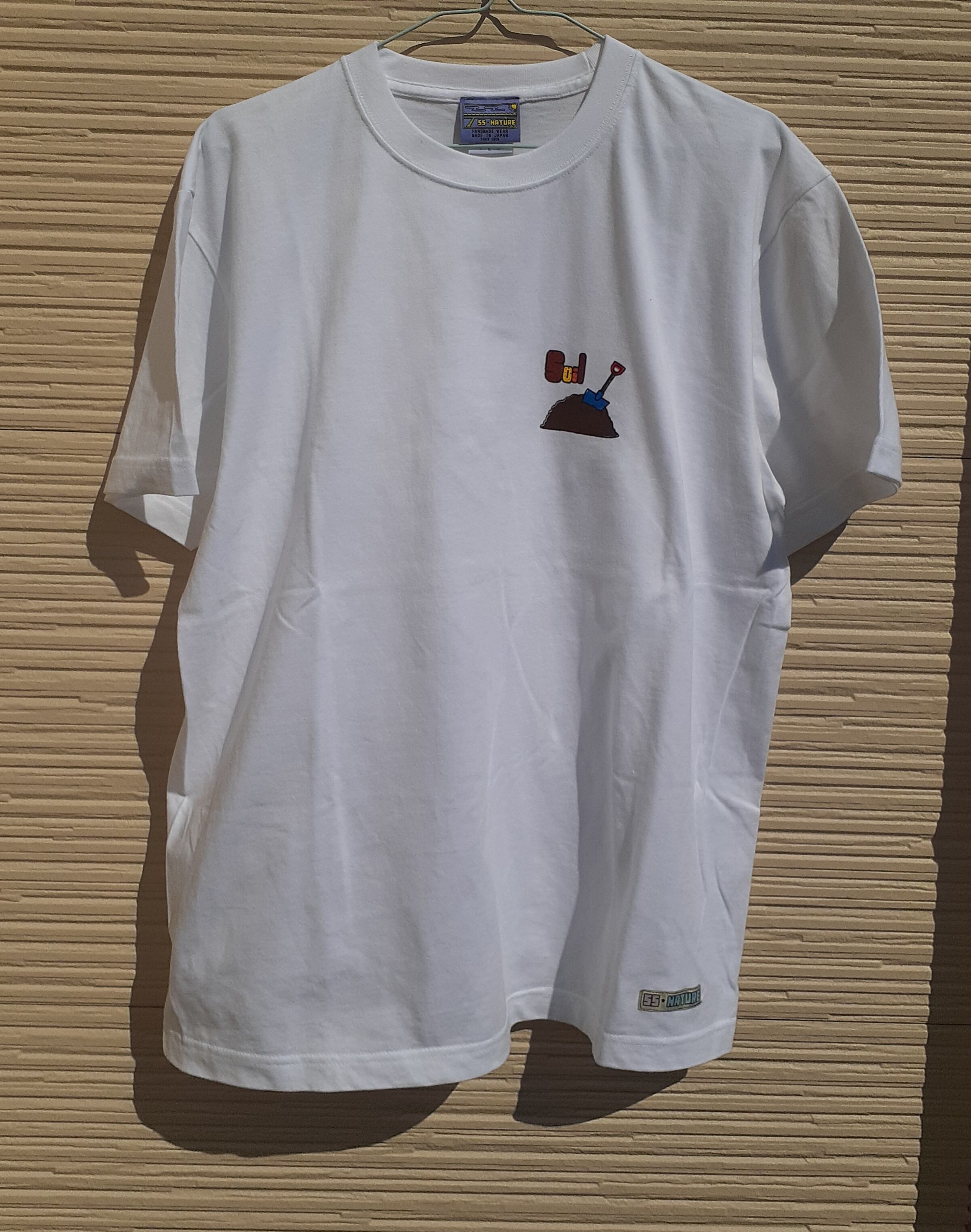 左胸に曜日を表したモチーフのワンポイント。(こつこつと土曜日:土とスコップ)