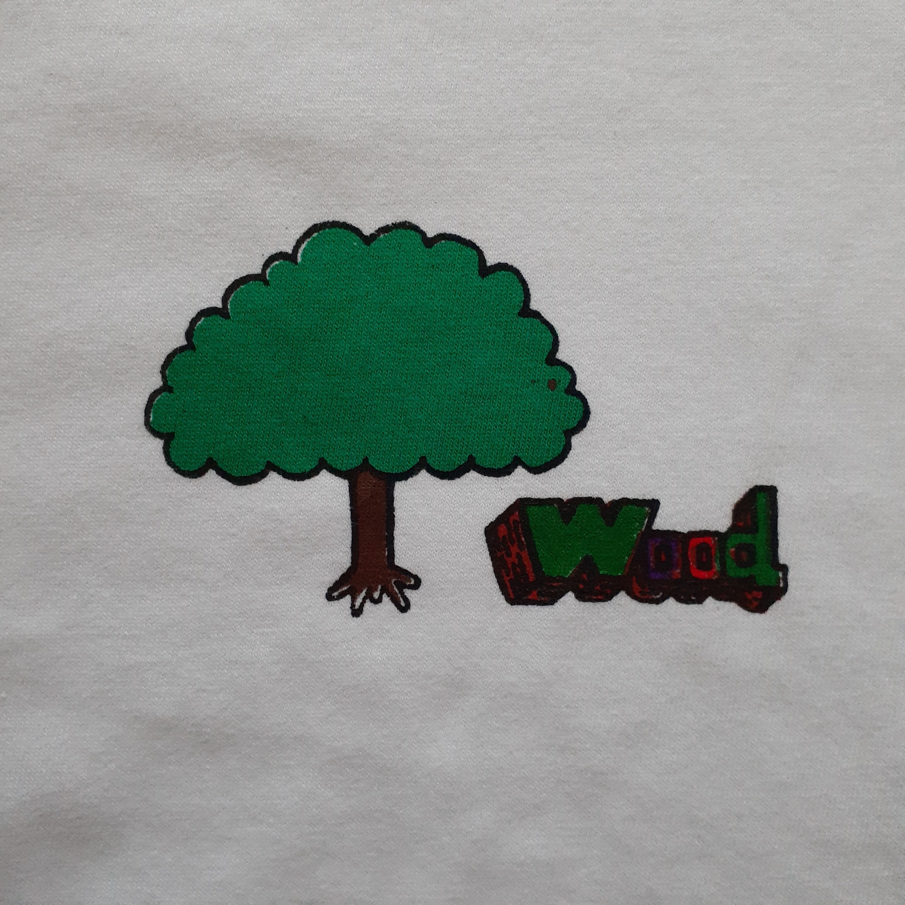 左胸に曜日を表したモチーフのワンポイント。(ほのぼのと木曜日:樹木)